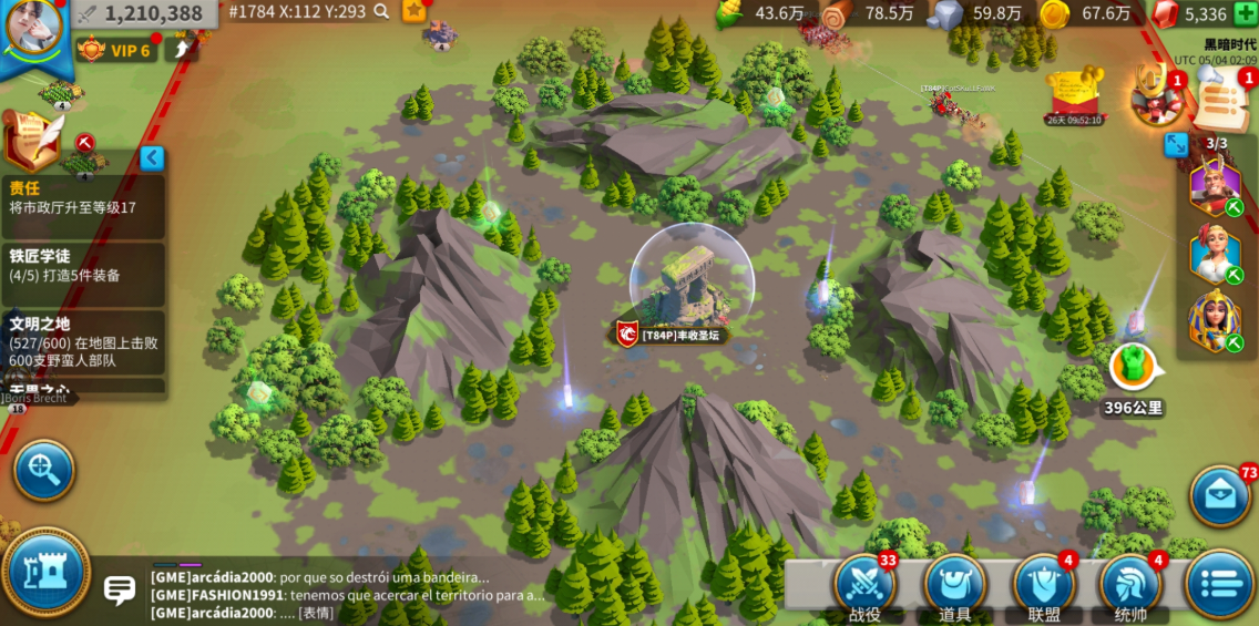 战术意识和操作技巧也算是一种软准备,平时多练练没坏处。比如学会跳矿和跳城这种基础操作,能在追杀和逃跑时显著提升机动性,甚至能用来躲避技能伤害。在复杂地形行军时,可以利用树林隐藏部队轨迹,达到伏击或悄悄接近的目的。野战时要时刻注意小地图和队伍状态,被多人集火了得懂得拉队伍进矿或盟友建筑脱战。还要留意王国和联盟的聊天频道,了解最新的敌情和指挥指令,该开盾的时候果断开盾,该迁城到安全位置就别犹豫。这些技巧虽然看起来琐碎,但在大规模混战中往往能让你保存更多实力,贡献更大作用。