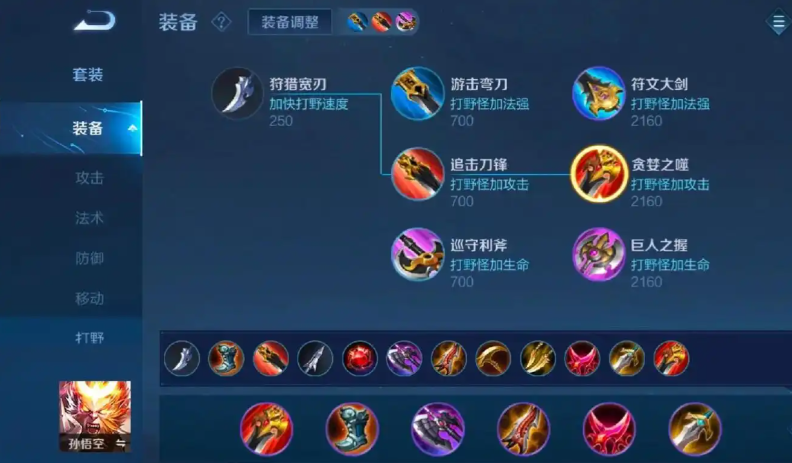 最后补上泣血之刃增强续航能力,打完团战后可以快速回血准备下一波。大后期可以把鞋子换成闪电匕首或复活甲,根据局势灵活调整。记住孙悟空是刺客不是坦克,打完一套就撤,等技能冷却再进场。没有铭文的情况下更依赖装备压制,所以经济领先很重要。