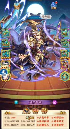 培养曹操时,重点放在防御和生命属性上。他的技能全是围绕团队生存设计的,比如帐前虎卫能让队友分摊伤害,天下归心还能概率回血。装备选盾兵套装或者加防御的宝物,天赋优先点出增加屏障效果的。如果资源紧张,先升到三星就能用,后期再慢慢补星级。别忘了搭配合适的符文,烈火符文和风暴符文能强化暴击和攻击,但核心还是保证他站得住。