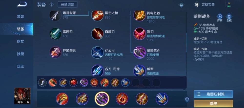 典韦出装与铭文攻略的核心在于平衡其生存能力与爆发伤害,充分利用其技能机制实现战场统治力。出装需围绕核心防御装展开,反伤刺甲是不可或缺的核心装备,其被动效果能与典韦大招附带的真实伤害形成联动,显著提升反击能力。抵抗之靴提供必要的韧性与法术防御,确保典韦在突进时不易被控制链限制。暗影战斧与宗师之力构成核心输出组合,前者提供物理穿透、冷却缩减与生命值加成,后者强化技能后的普攻伤害并提升移速,契合典韦的爆发节奏。后期装备选择需根据战局调整,魔女斗篷针对敌方法术爆发,破军或无尽战刃可进一步强化收割能力,而贤者的庇护或名刀·司命则提供关键容错率。