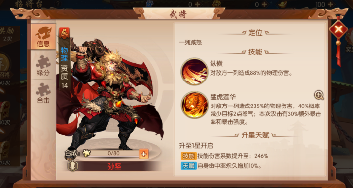 于吉的毒伤能持续消耗对手,配合公孙瓒、董卓这些高暴击伙伴,伤害非常可观。华佗的治疗和暴击率加成简直是量身定做,让整个队伍的输出更上一层楼。碎片获取相对容易,像董卓、华雄这些武将升星比较快,前期就能形成战斗力,对资源有限的伙伴很友好。主角的时装选择会影响全队属性,优先选高品质的。初期资源紧张时别急着追求金将,合理利用七天登录和活动送的元宝、招募令,慢慢积累阵容。九天后有金将招募活动,可以根据已有武将补齐关键角色。