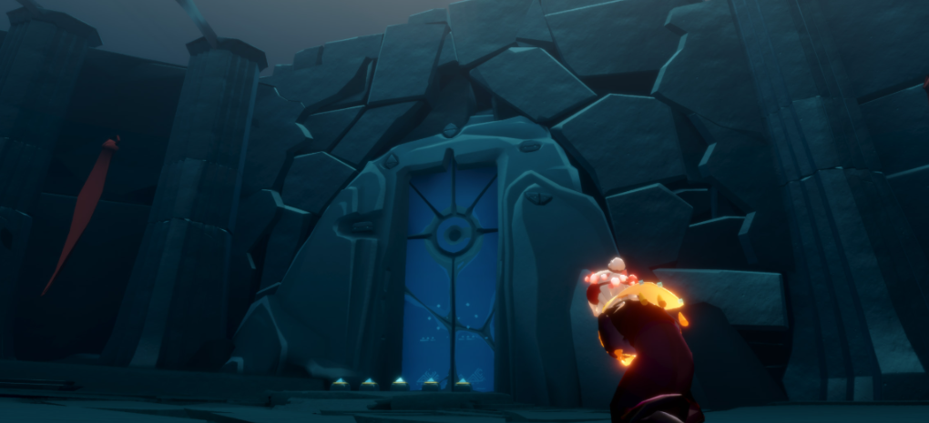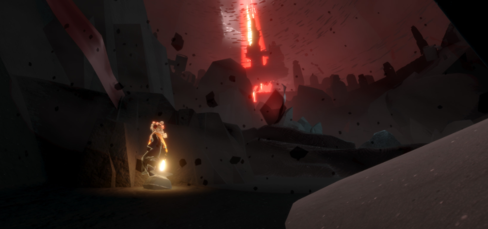 前半段旅程要特别留意两种威胁:滚落的巨石和冥龙的蓝色光柱。走过石阶找到第二扇门后,躲开滚石快速到达石塔区域。爬上石塔时利用高低差遮挡冥龙的视线,管道是重要的安全通道,进去前先在石头缝隙里卡好视角,等巡逻的冥龙转身离开再迅速钻入。这段路千万别尝试飞行,狂风会把你吹得失去平衡,稳扎稳打地跳跃前进才是正解。