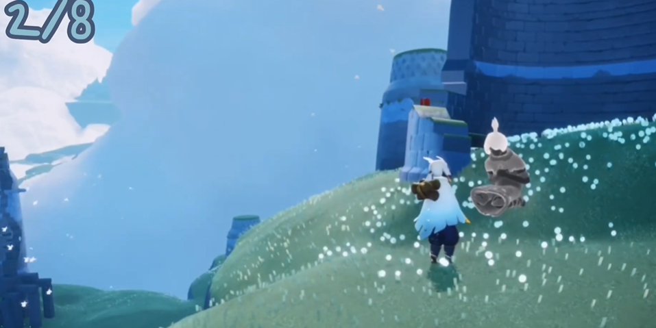 云野地图包含八个基础动作,需通过寻找先祖并完成回忆解锁。动作位置分布遵循地图动线逻辑,从入口至终点神殿呈递进式布局。进入云野穿越云洞后,首个举蝴蝶动作先祖位于左侧馒头山底部洞穴,此处需注意规避巡逻的暗黑生物。向前抵达蝴蝶平原,右侧隐藏图幽光山洞内可获取擦汗动作,该区域存在能量补充点,建议优先点亮场景蜡烛稳定环境光源。