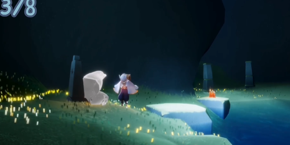 中间主岛平台显眼处为打招呼先祖,其西侧双人门内藏有打哈欠动作,需两名玩家协同点火开启石门。左侧副岛双人门内存放鼓掌动作先祖,右侧副岛则需通过八人协作开启竞技场大门获取举蜡烛动作,此处建议观察其他玩家动向组队完成。终点神殿入口处的挥手动作先祖极易辨识,但需确保已解放该区域所有黑暗植物方可触发完整动画。