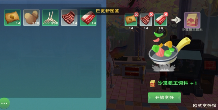 配方很简单:优质饲喂肉、生羊排和土豆饲料包。优质肉可以从20级以上的怪物身上打出来,生羊排要击杀羊类掉落,土豆饲料包则用5个土豆在工作台合成。 沙漠里资源丰富,土豆和羊排都能就地取材,节省你来回奔波的时间。确保带上14包饲料才够用,少了可能抓不住沙狼王。 如果路上遇到金粪龟,顺手打一下,它能爆出有用的护符,但别因此偏离主线任务。