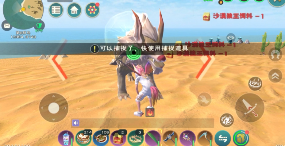 当你到了沙漠区域,建议从海岸边起步,那里有成对的沙漠狼出没,它们会围着水晶矿巡逻。你继续往前探索,就能发现那只标志性的骆驼,沙狼王大概率在其周边徘徊。 有些玩家分享的坐标点也很靠谱,比如(11018, 9712)或(10886, 9754)这些位置,但别死盯一个点,沙狼王可能在多个骨头堆旁刷新,包括左下角或靠近飞龙的地方。 记得等级至少要达到35级才能尝试抓捕,不然根本没法下手,提前准备好捕兽夹和饲料会让整个过程更顺利。