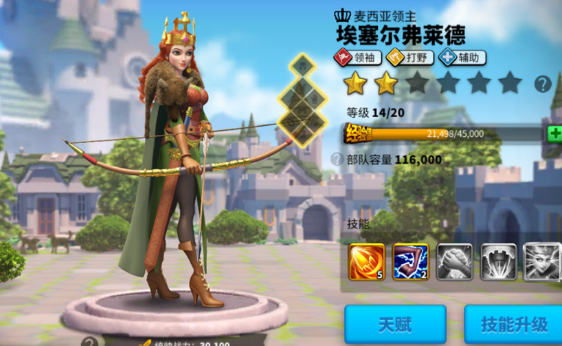 埃塞尔的玩法专注于辅助功能和装备优化。技能核心是重箭千钧,降低敌方攻击力、防御力和生命值;雷霆之势提供反伤减伤和减速效果;麦西亚要塞在混兵时提升伤害。天赋建议辅助系为主,点出刺笼之围增强减速,结合领袖天赋增加部队容量。装备优先堆生命值,推荐圣者之心武器和复兴者套装,提升辅助能力而非输出。埃塞尔通过远征商店获取,培养成本较低,觉醒后临战女王技能对减速目标增伤,强化团队贡献。实战中,她适合群体破防后接续爆发,但需注意定位偏向辅助,避免单独冲锋。