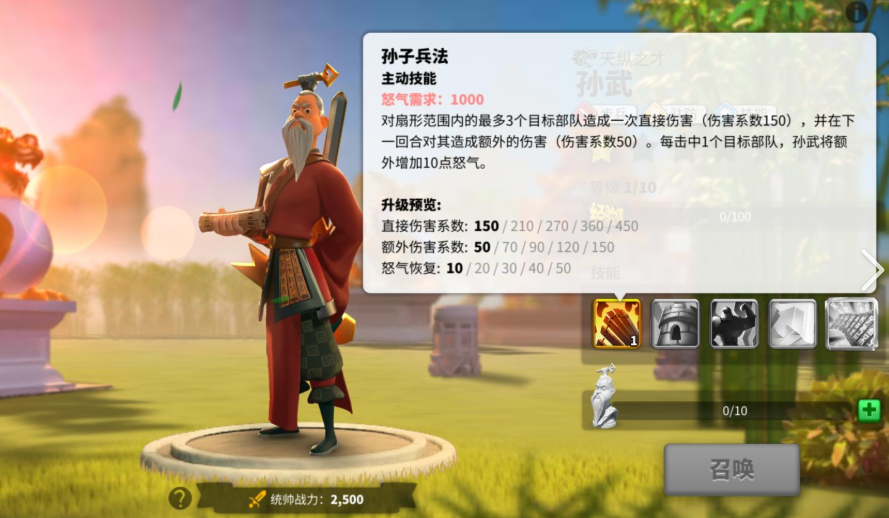 孙武的玩法围绕技能升级和天赋配置展开。技能顺序应优先孙子兵法,提供扇形范围伤害和怒气回复;次重点兵家至圣,增强减伤和步兵生命;再用兵之道和兵者诡道后续升级。天赋加点分野战和驻防方向:野战天赋侧重技能系,强化怒气回复和伤害输出;驻防天赋点满减伤和生命加成,提升防御力。装备选择以生命值和攻击力为主,如名门之盾武器,确保生存同时维持输出。避免过度投入资源,孙武觉醒后解锁万世兵书,扩大伤害范围,但需平衡发展,防止资源分散。