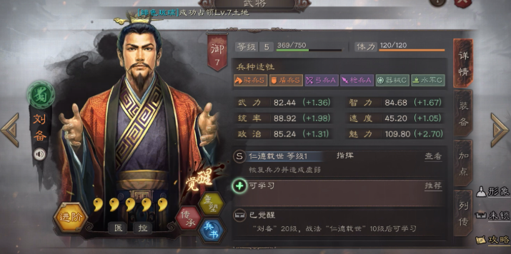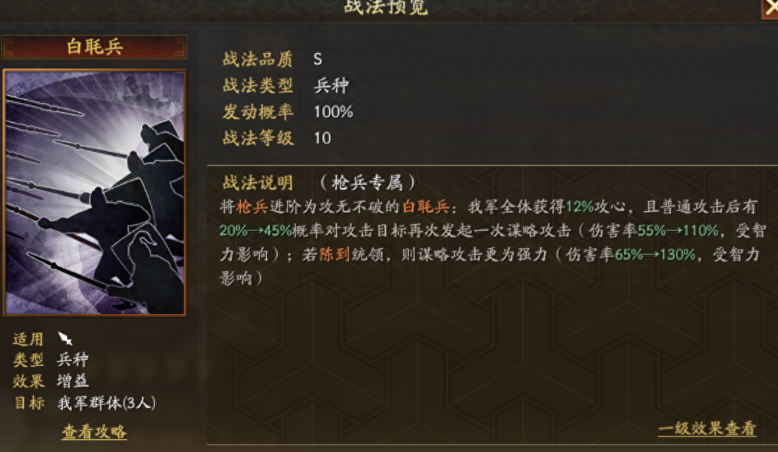 刘备作为核心辅助,自带战法仁德载世提供每回合群体治疗,是阵容续航的基础。推荐搭配八门金锁阵与白毦兵:前者降低敌军群体输出并为刘备提供先攻,保障开局稳定性;后者提升枪兵属性并附加谋略伤害,弥补队伍输出短板。若缺乏八门金锁阵,暂避其锋可作为替代,定向保护低统率队友。兵书选择援其必攻与掩虚,前者为受治疗目标提供减伤,后者降低自身被集火风险,进一步强化生存能力。