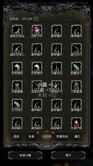 开局咱们最需要的就是紫水晶和漆黑利爪这两种战利品,它们对前期积累金币和魂特别关键。紫水晶只有图二、图三的地精才会掉落,它能大幅提升冒险时获得的金币数量;漆黑利爪得去图五找腐化行者刷,作用是增加冒险魂的收益。每天最多能拿到五个战利品,建议优先把次数留给它们,毕竟资源充足了发展才顺畅。刷的时候不用太纠结属性高低,先拿到能用就行,后期再慢慢换更好的。