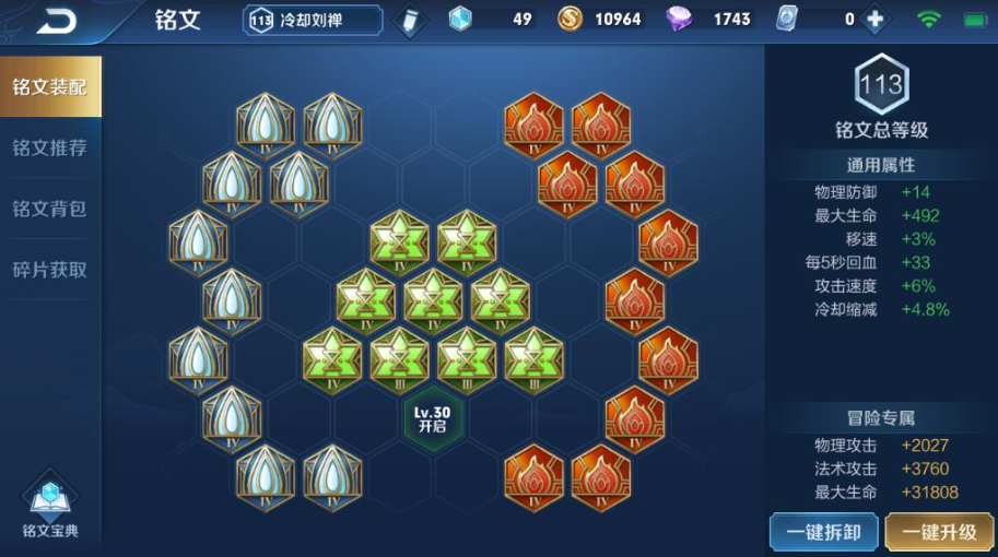 铭文搭配采用10宿命、10虚空、10调和,总计提升生命值、冷却缩减及回复效果。宿命提供攻速与物防,调和增强前期续航,虚空减少技能冷却,三者协同强化刘禅的坦度与控场能力。该铭文体系使其前期对线具备压制力,中期团战能稳定吸收火力,被动技能对防御塔的干扰效果亦得到充分发挥。