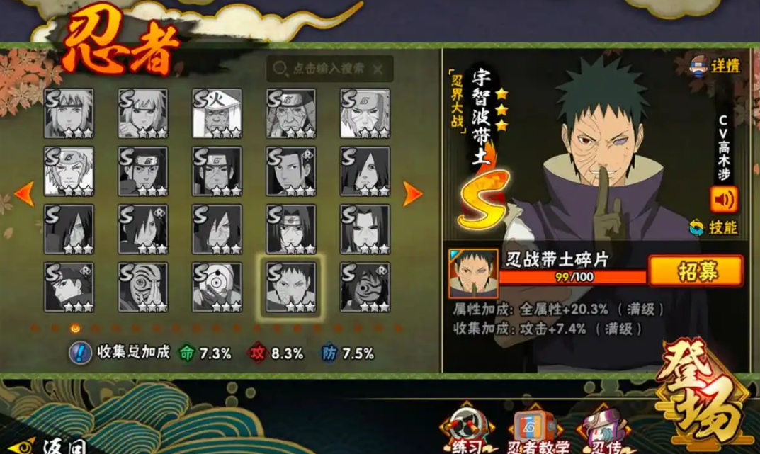 资源管理需注意奥义点消耗与能量条平衡。奥义通灵术·十尾具备全屏攻击和打断效果,但释放后需重新积累能量点。触发三次火遁·爆风乱舞后,奥义会替换为神威·转移,成为制胜关键。实战中优先保留能量点用于关键闪避,避免过度依赖虚化导致输出真空。阵容搭配建议选择具备护盾或治疗能力的忍者,如纲手或赤色岩拳,弥补带土防御短板。