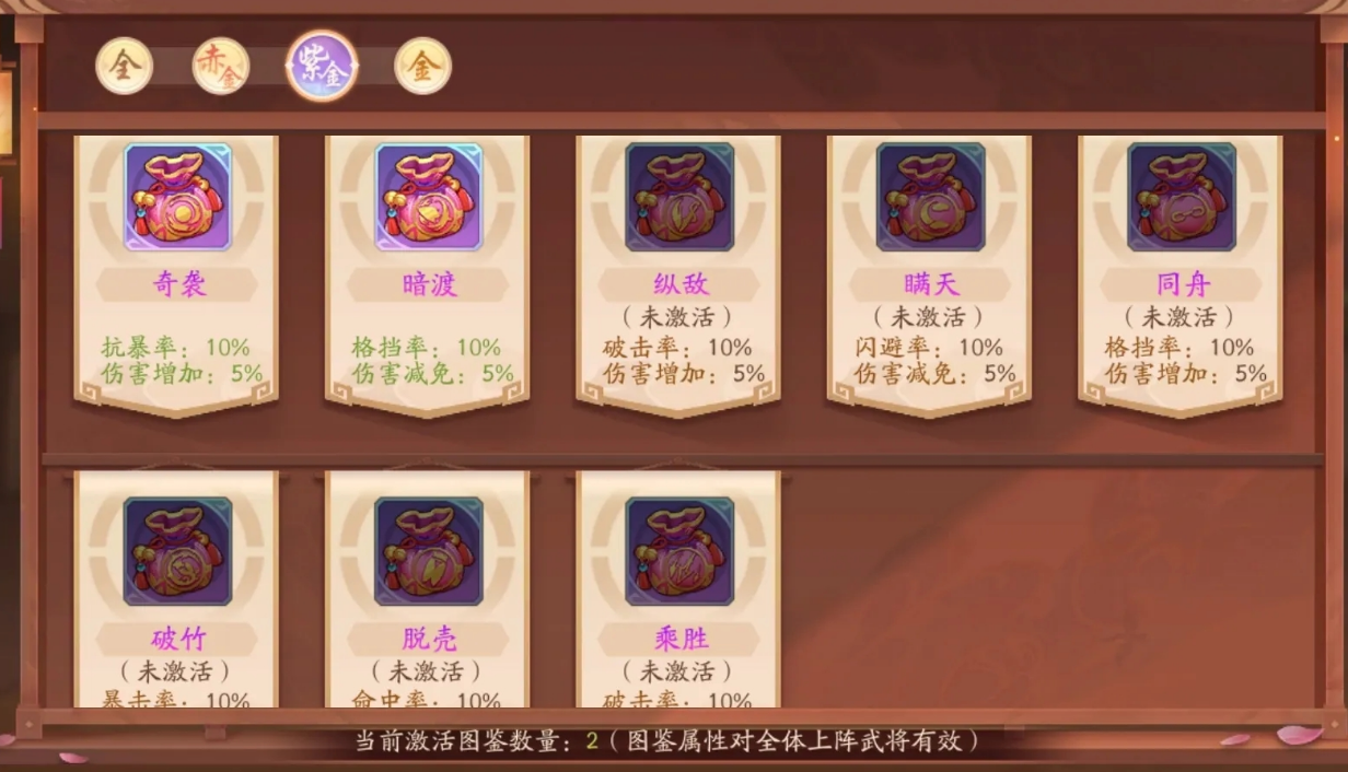 锦囊强化需遵循属性优先级,百分比加成的攻击类属性优于固定数值,技能锦囊则需根据武将特性搭配。紫金锦囊如暗渡适合主C武将提升生存,观火对吴国阵容有显著增益。八个锦囊格需平衡输出与防御属性,吸血类锦囊可弥补续航不足。同类型锦囊吞噬升级时,建议优先将低级锦囊喂给核心武将佩戴的高级锦囊,避免资源分散。