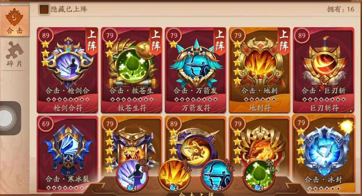 兵符系统的全局增益效应是锻造的核心价值。所有已激活兵符的属性加成均对全体上阵武将生效,包括攻击、生命、防御等基础属性。兵符升星可显著提升技能效果与属性加成,每消耗碎片升星一次,攻击、生命等关键属性均会获得阶梯式增长。兵符图鉴系统会汇总所有已收集兵符的星级与强化数据,转化为额外全队属性加成。这意味着持续收集碎片激活新兵符,即使未装备也能通过图鉴提升战力,形成资源投入的长期收益。