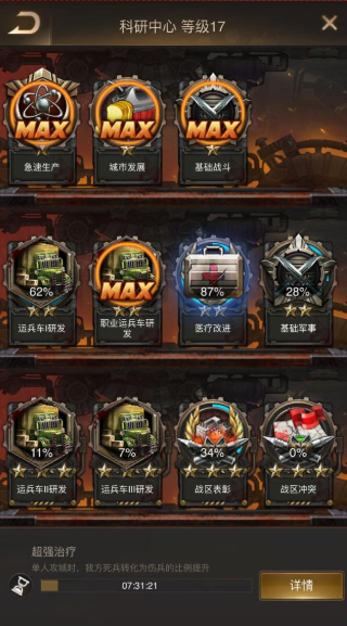 科研中心作为守望黎明的核心建筑,其升级顺序直接影响资源生产效率、军事强化速度和整体发展节奏。根据游戏机制和实战需求,优先升级方向应围绕基础资源增产、军事科技强化和防御效率提升三大核心展开。科研中心初期需优先解锁资源采集与生产效率类科技,包括伐木、采矿、石油分馏及电力增产。