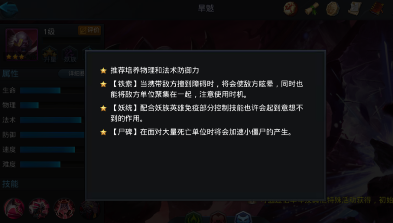 强化妖统护盾效果的天赋必点,盾越厚越能扛。钩子相关的天赋也别漏,比如钩中人后减对方法防或者给旱魃自己回血,能把这招的控制和生存价值榨干。至于小僵尸那块,点出提升僵尸伤害或让僵尸打人能给你回血的天赋,这样尸碑一立,小僵尸不光烦人,还能变相给旱魃续航,战场搅屎棍地位更稳固。实战里记得活用旱魃的钩子打乱战局。瞅准机会钩个脆皮或者关键角色到队友火力圈,集火秒掉就赚大了。开打前尽量把尸碑放在战场中央或者兵线交汇处,这样倒下的小兵野怪都能变僵尸,形成持续压力。