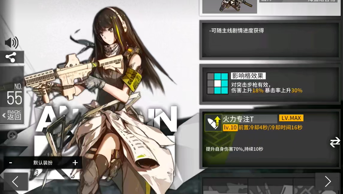 游戏内五星角色作为战术体系的核心构成,其强度主要体现在技能机制与战场定位的契合度上。突击步枪类别中,M4A1凭借提升全队火力的队长技与均衡的攻速射程成为泛用性标杆,其光环效应能显著强化梯队整体输出效率。同为突击步枪的G11则依靠暴击增益机制在爆发场景表现突出,被动触发的高暴击率与暴击伤害加成为攻坚提供稳定保障。卡尔卡诺M91/38凭借独特的被动倍伤特性,对非精英单位具备压制性杀伤力,满技能后的必中暴击机制进一步巩固其单体歼灭地位。