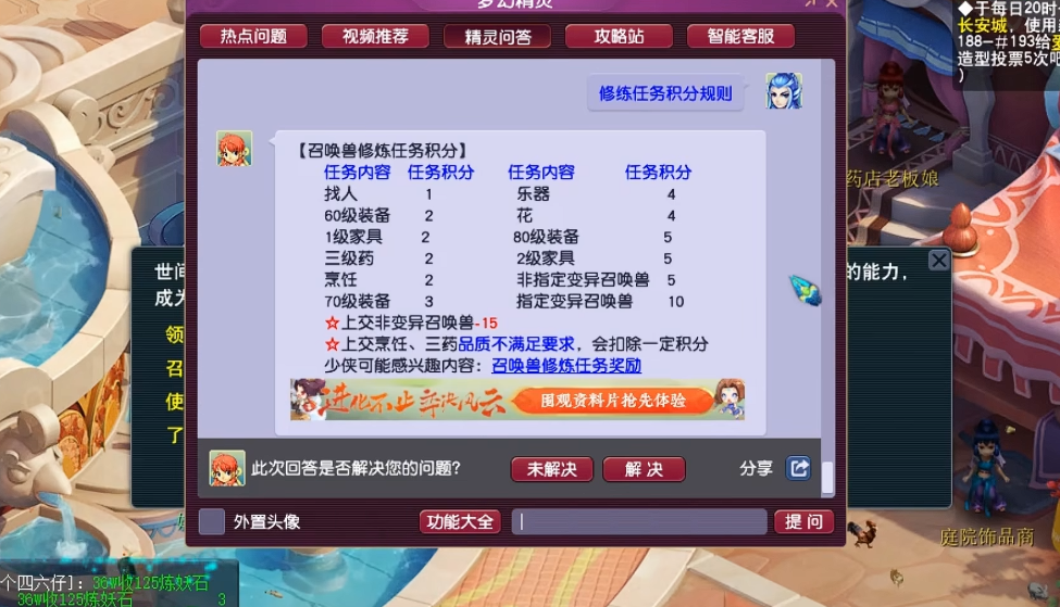 跑宝宝环的任务类型主要有找人、交环装、交花卉乐器或变异召唤兽。找人任务最简单,每次1分;交60环装得2分,70环3分,80环5分;变异宠固定5分。这些任务随机出现,建议提前备好便宜的60-80环装和常见变异宠,遇到要高价物品时可考虑放弃任务扣分,但整体成本需控制在400-500万游戏币内才划算。