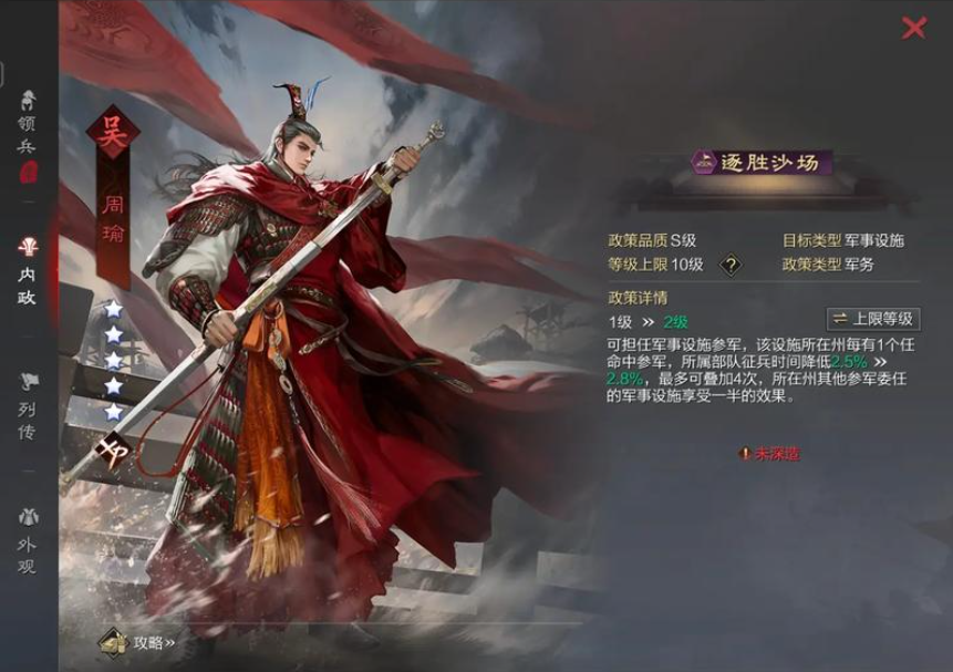 战法选择是强化张角的关键环节,范围攻击类战法如烈火可造成群体伤害并概率点燃目标,雷击同样提供群体输出附带晕眩效果,两者均能放大张角的AOE优势;而百步穿杨专注于单体伤害和沉默效果,适合针对敌方核心技能型单位,起到保护作用;这些战法需结合阵容整体需求,例如在搭配曹操时侧重输出增强,与周瑜组合则强化控制链。