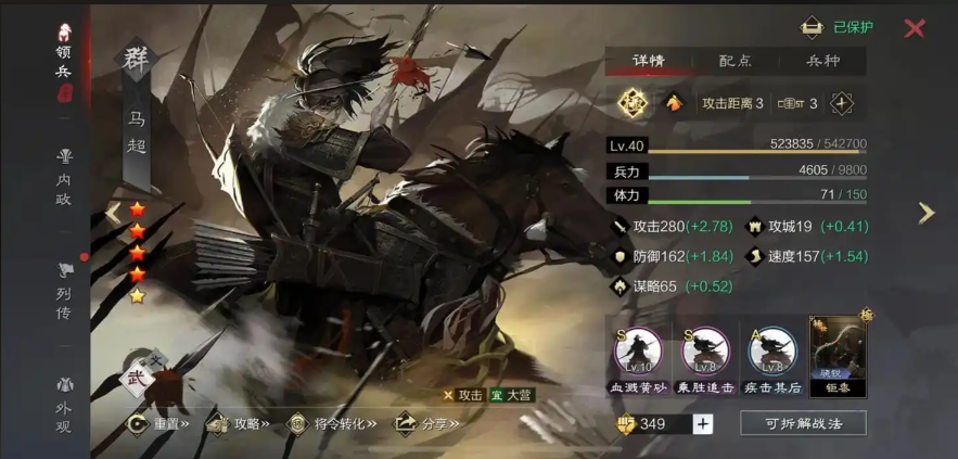 更推荐优先培养马超,因为他在开荒期的表现更加稳定,配合甄洛、魏延等相对容易获取的武将就能实现低损耗打地,这对资源有限的玩家来说至关重要。当然如果有条件的话,最理想的方案是两个武将都进行培养,马超主要负责前期的发育过渡,张辽则留待后期打架时发挥作用。宝物选择方面也体现了他们的不同定位,张辽推荐携带别鸣或灵动这类提升速度的宝物,而马超则优先选择屈卢这种增加攻击力的武器,这样才能最大化各自的优势。