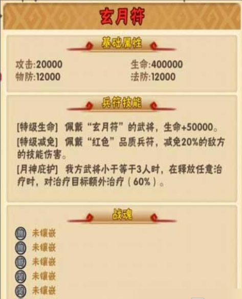刘备作为蜀国核心辅助,玄月符能最大化其治疗能力。该兵符不仅提升刘备的攻击和生存属性,其技能可减少20%敌方技能伤害,并在队伍减员时提供60%额外治疗加成。这种配置使刘备的辅助效果产生质变,确保团队在劣势局面仍能维持战斗力。玄月符的减伤机制与治疗强化形成完美互补,是蜀国续航体系的关键组件。