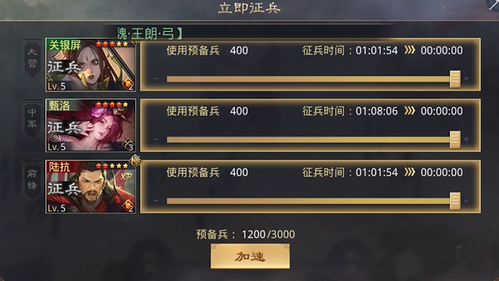 武将选择和培养对征兵效果有重要影响。部分武将自带减少征兵时间或降低资源消耗的技能,例如某些武将能提升征兵速度8%-25%。将这些武将安排为要塞参军或主城参谋可以最大化利用其增益效果。同时要注意武将体力管理,每次立即征兵会消耗武将20点体力,避免连续作战导致体力枯竭。通过历练、学习技能等方式提升武将属性,也能间接提升征兵效率。在军队配置上要根据敌方阵容调整征兵策略,利用兵种克制关系优化部队结构。