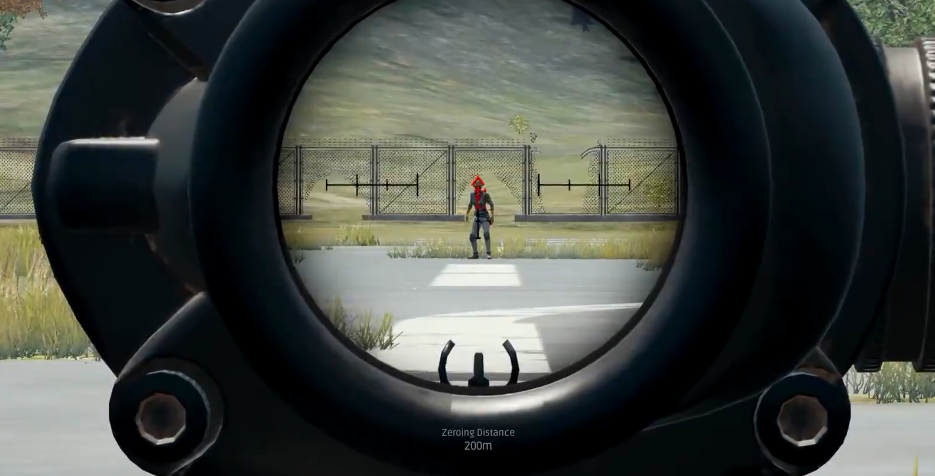 距离再拉远到300米或400米,测距方法也是类似的,但你需要看更下面的刻度线。比如在300米,敌人的肩宽可能会跟从中间往下数的第三条横线的宽度一致;到了400米,他的整个身高也许就跟从准星中心到下面某条线的距离一样高了。每把枪的子弹速度不一样下坠也不同,但通过这个人体比例法你先知道了距离,就有了调整的基础。找参照物的时候尽量选静止不动的敌人或者固定物体,这样判断起来最准,而且测距时要快,别长时间暴露自己。
