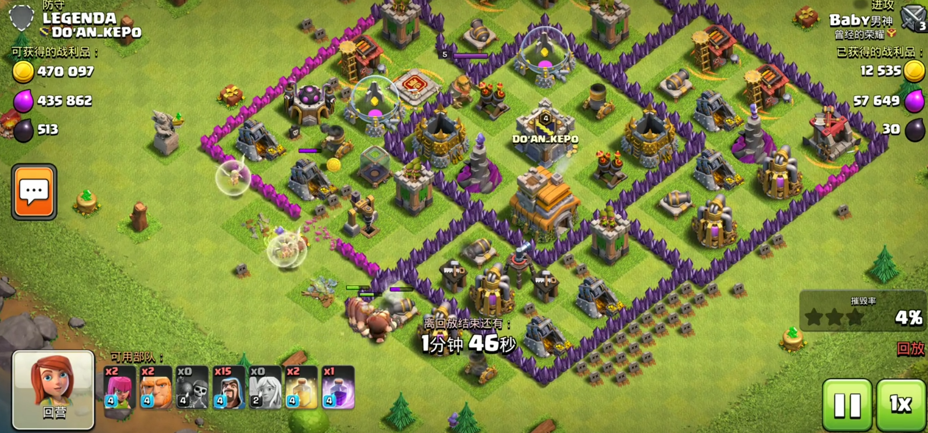 高本阶段超级部队与新流派崛起,超级哥布林适合资源掠夺,隐身药水配合跳墙,直取资源库,低损高效。超级大雪怪、陨石戈仑等强势兵种,配合图腾、隐身等新法术,双英雄断边后主力一字划推进,英雄技能与法术精准释放,可快速摧毁核心防御与大本营。攻城机器如滚木车、飞艇可快速开墙或爆本,搭配援军与法术,大幅提升破阵效率。进攻时把控节奏,前戏清边杀援,中期主力推进,后期英雄与法术收尾,确保部队协同、伤害最大化,避免分散兵力导致被逐个击破。