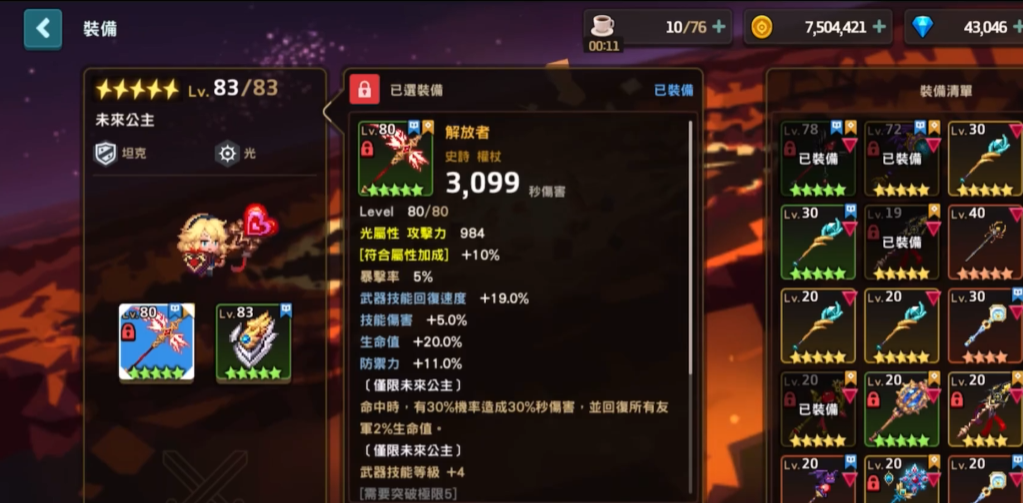 未来公主的培养优先度很高,但要注意资源分配避免过度倾斜。她虽然是后期强势角色,但低练度时表现一般,建议在限时概率提升时抽取并尽早培养。基础属性重点提升气血和防御力,技能方面优先升级嘲讽、防御加成和治疗效果。专武解放者值得强化,能进一步提高输出和辅助能力。