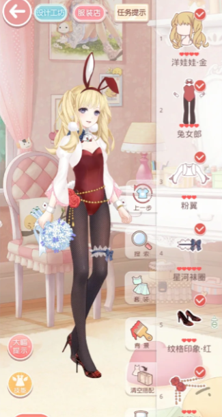 完美通关兔女郎关卡,首先必须确保拥有连衣裙兔女郎和头饰兔女郎头饰这两件核心单品。这两件是系统明确要求的必备品,缺少任何一件都会导致评分大幅降低。制作图纸可以在设计图界面找到,需要的材料通过少女级关卡或服装店购买就能集齐。其他服饰可以按照简约、活泼、清凉、可爱、性感这五个关键属性来搭配,优先选择高级别的单品。