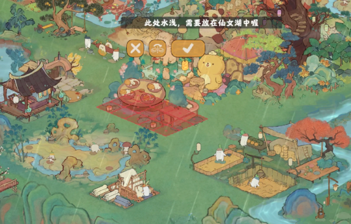 通过主界面右下角的营造功能进入建造页面,在生产类建筑中找到水晒坊选项。选择建造后会进入仙女湖场景,需寻找合适的水域位置进行摆放。仙女湖作为水域生产线的核心区域,其水面空间需合理规划,水晒坊必须完全放置在水域范围内,与岸边保持适当距离以便后续操作。