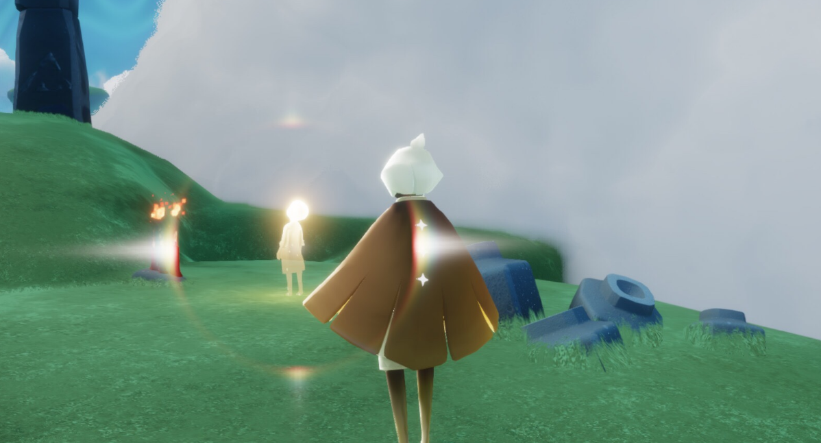 雨林和霞谷的地图稍复杂,但作为两翼的你也能搞定。雨林里,留意左侧山洞或远处闪光点,经常有小金人卡在角落;霞谷的滑行赛道和冰面上,小金人常在桥头或塔尖,滑慢点就能看清。 记得带上好友当充电宝,能量不够时可以互相充能,避免淋雨黑掉,这样探索更高效。在风行季小金人处,从岛屿右侧帐篷山洞进风口绕行,系统会自动吸附光翼。