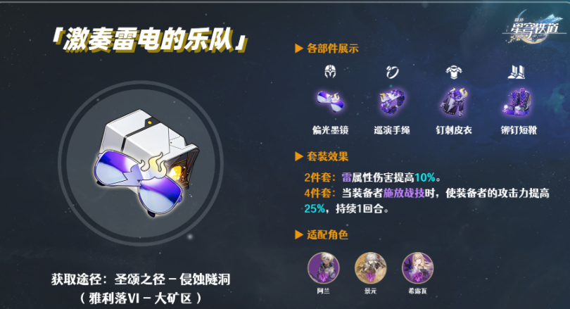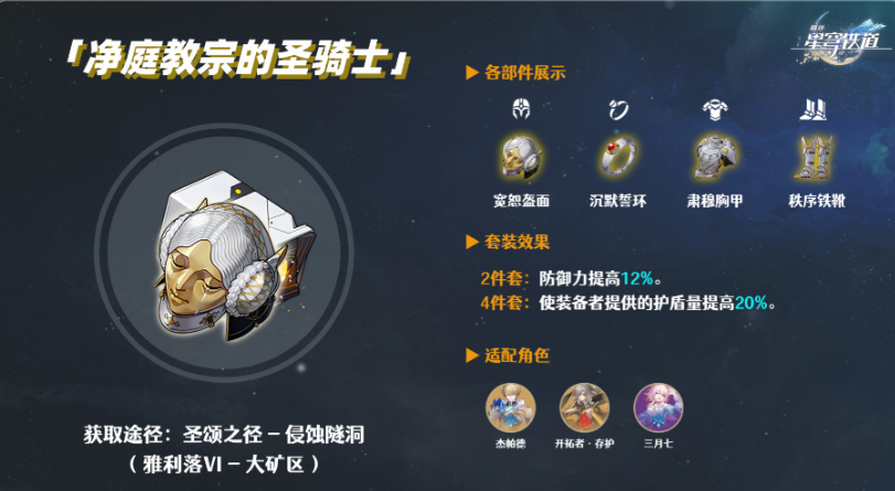 游戏内共有多个侵蚀隧洞分布于不同区域,每个隧洞对应两套专属遗器。霜风之径位于空间站黑塔的收容舱段,产出冰属性的密林卧雪猎人和风属性的晨昏交界翔鹰;圣颂之径位于雅利洛VI的大矿区,提供防御型净庭教宗圣骑士和雷属性激奏雷电乐队;漂泊之径在雅利洛VI残响回廊,可获取治疗型云无留迹过客与攻击型野穗伴行快枪手。其他如讯拳之径、睿治之径、野焰之径则分别分布于永冬岭、仙舟罗浮流云渡及回星港,覆盖物理、量子、火伤等多元属性套装。