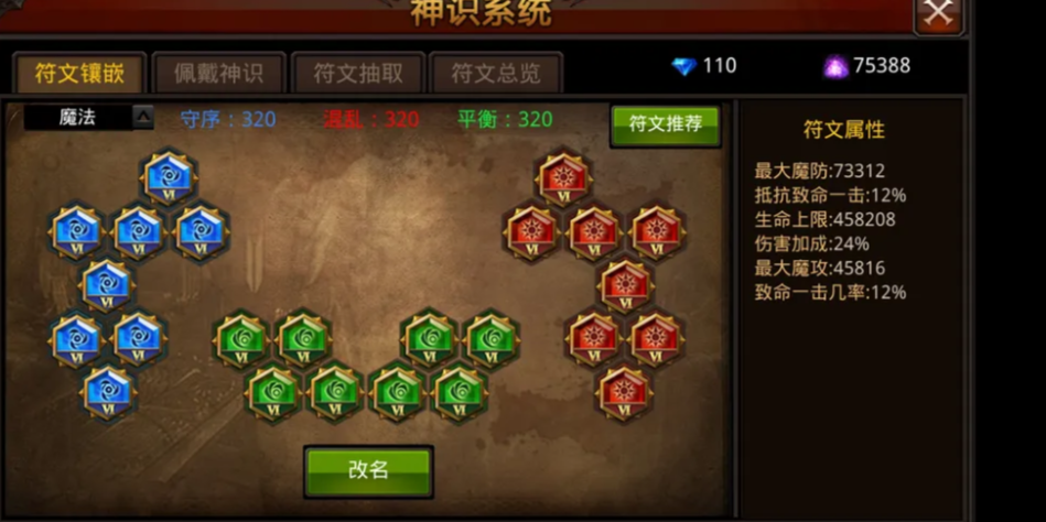 得注意属性与神识的搭配。镶嵌时预留多套方案,利用一键切换功能应对不同环境,比如PVP选攻击型符文提升暴击率,PVE则用防御型增强生存。攻击型符文如混乱系能强化技能伤害,适合法师和弓箭手;防御型如秩序系增加生命上限,更适合战士。镶嵌时优先选择与职业契合的符文,比如远程职业用猫鼬之灵要求目标距离大于7米,而近战职业选骁勇天神需贴身3米内。这样能最大化输出效率,避免资源浪费。