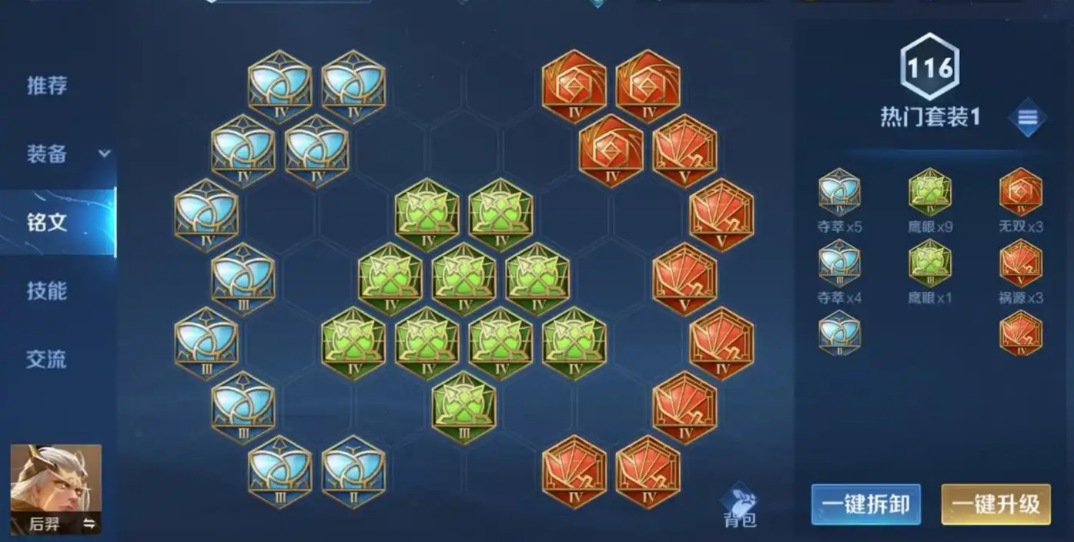 后羿的铭文搭配需要与出装相辅相成,常见的组合包括夺萃、狩猎、鹰眼、祸源和无双。夺萃提供物理吸血,增强对线期的赖线能力;狩猎增加移速和攻速,提升机动性;鹰眼提供物理穿透,强化输出;祸源和无双则侧重暴击属性和暴击效果。这样的铭文配置能让后羿在前期就具备不错的清线和消耗能力,中期装备成型后输出更加稳定。