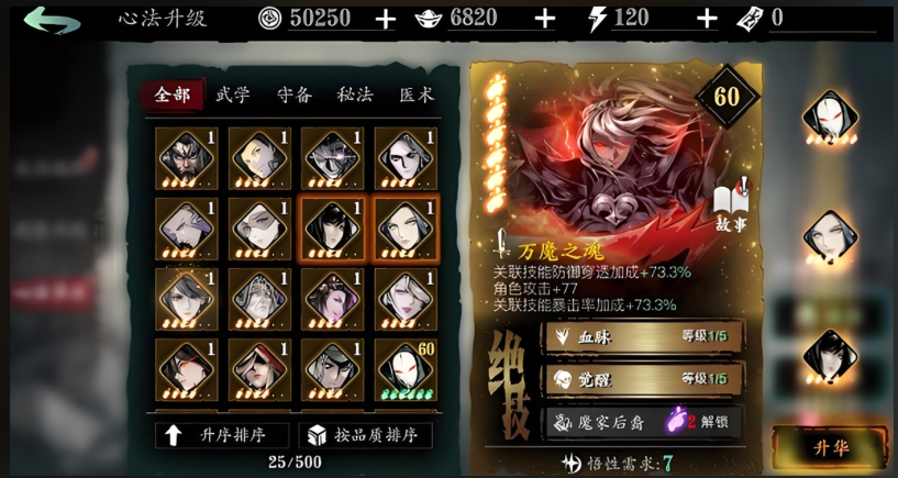 心法系统对暴击伤害的提升至关重要,副心法如烈阳心法、影月心法在满级后能显著增强输出能力,需要与主心法及装备形成联动,高品质心法如魔堡故人、万魔之魂对暴击伤害的提升更显著,养成过程中需要关注心法突破和升华,这些能解锁额外绝技和属性上限,心法加成分为词缀加成和自带暴击率提升效果,需要合理搭配才能发挥最大作用。
