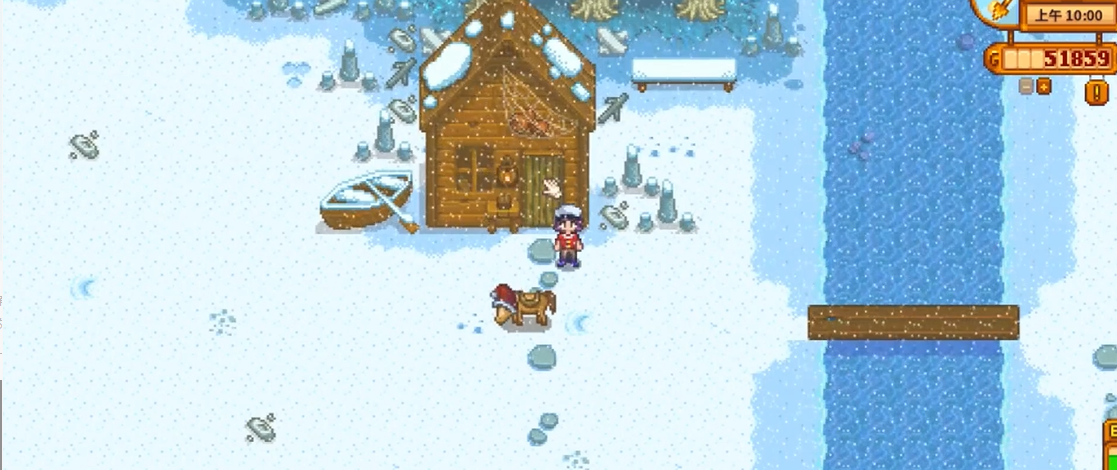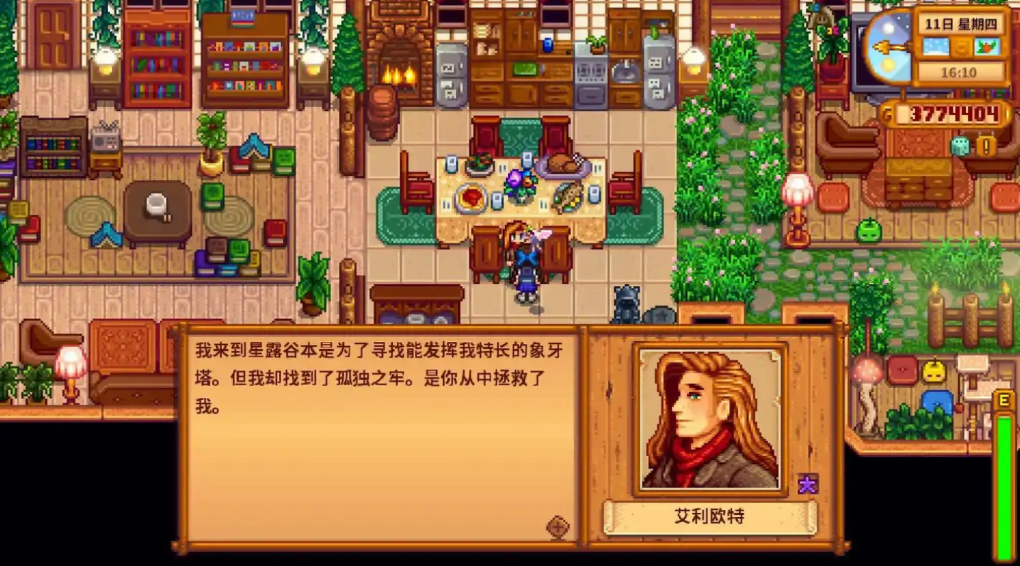 浪漫作家艾利欧特的小木屋就在沙滩边上,紧挨着威利的鱼店。从农场出发,往南走到沙滩区域,沿着海岸线往右走,就能看到一栋棕色的小房子,那就是他的家啦。艾利欧特平时喜欢待在家里写作,但不同季节和天气会影响他的行程,所以如果敲门没人应,可能是他出门找灵感去啦。