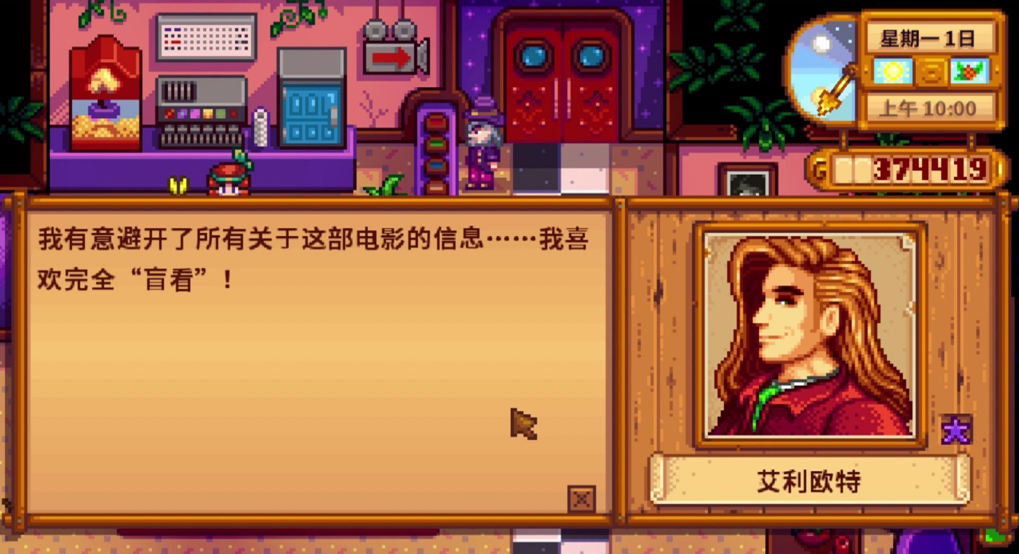 春天的时候,艾利欧特一般上午10点之后才会出门,下午3点左右喜欢站在家北边的桥上发呆,看起来像是在思考人生。不过周一他会溜达到莉亚家附近,周四则固定去皮埃尔的杂货店逛逛,周五下午又会换到南边的桥上吹风。夏天的话,除了周四和周五去皮埃尔的店,其他时间他更喜欢去医院或者莉亚家串门,真是个闲不住的家伙呢。