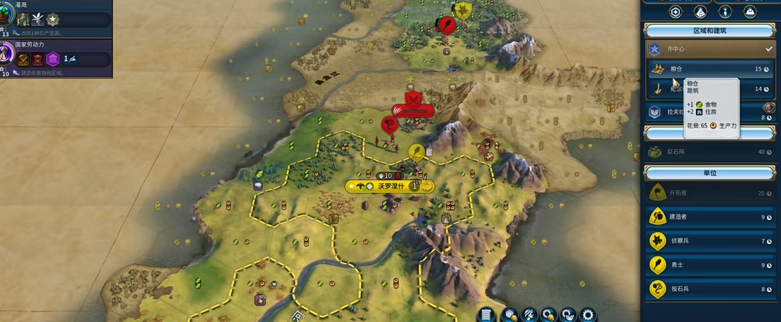 地块信息面板能提供最全面的属性详情。点击任意地块后,屏幕会弹出信息面板,列出该地块的地形类型、资源种类、产出数值以及特殊加成。平原草地可能显示+2食物,而丘陵矿山则标注+1生产力。若地块临近河流或拥有奢侈资源,面板也会明确标注。按住特定快捷键(如Tab键)可切换至战术视图,以颜色和图案简化显示地形属性,适合快速分析大面积区域。