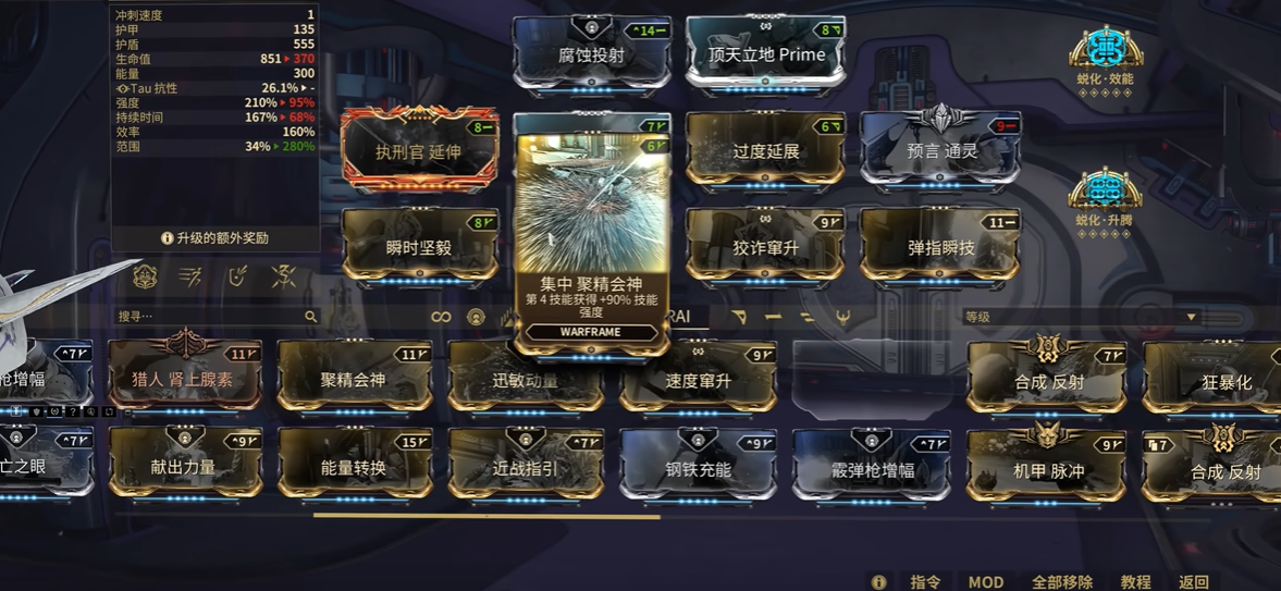 技能强度卡是提升战甲战斗力的核心要素,它们直接影响技能的伤害输出、效果范围和持续时间。最常见的技能强度MOD包括集中力量、力量漂移等,这些卡片能显著增强战甲的基础能力。集中力量作为新手最容易获取的MOD,可以提供55%-99%的技能强度加成,但代价是消耗更多能量。而力量漂移这类漂移MOD则附带额外效果,比如增加护盾充能或移动速度,适合追求综合性能的小伙伴们。合理搭配这些基础MOD,能让你的战甲在前期任务中轻松应对挑战。